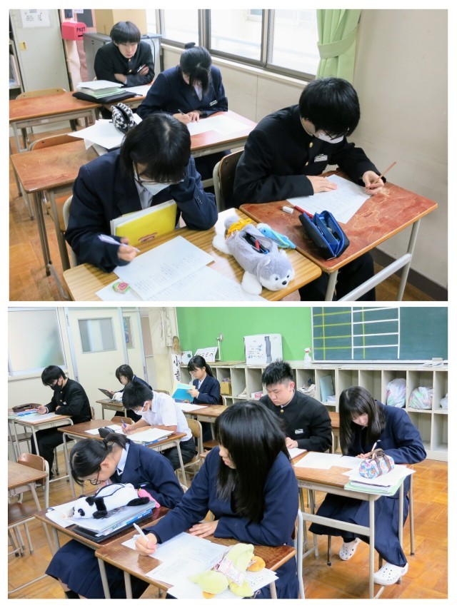 3年生の国語の学習の様子です。先週の私立高校の入試、合格発表を終え、併願受験者は、本命の公立高校入試へと気持ちはシフトです。