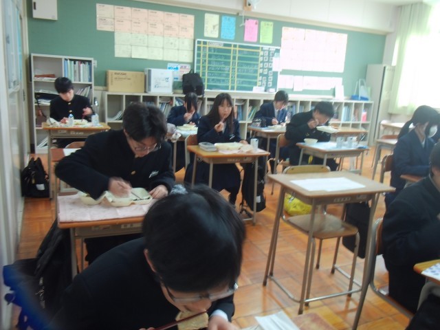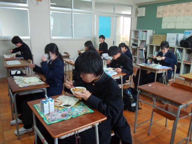 牛ひじきそぼろは、綿実油でしょうがを香りよく炒め、牛のひき肉と戻したひじきを炒めます。味付けは、みりん、しょう油、砂糖で、配食時にご飯に添えていただきます。