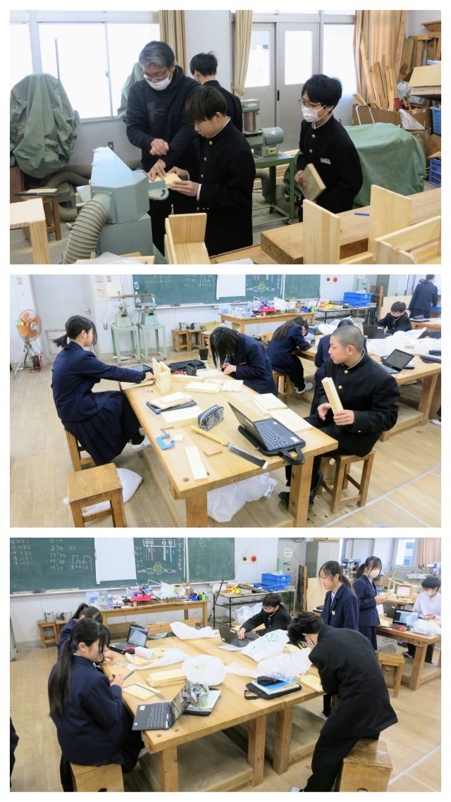 1年生の技術の学習の様子です。材を使用した制作実習の続きです。