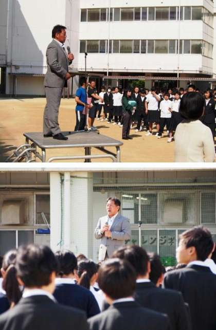 続いて昨日は女子バレーボール部の試合観戦に行ったことをお話しされ、試合前、試合後の校長に対する礼儀正しいあいさつや、本日の登校時に女子バレーボール部員たちから正門で並んで「ありがとうございました♪」とあいさつされたけど、「こっちがありがとうやで。」と部活動を頑張っている生徒、部活動の素晴らしさをお話しされました。