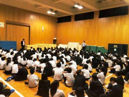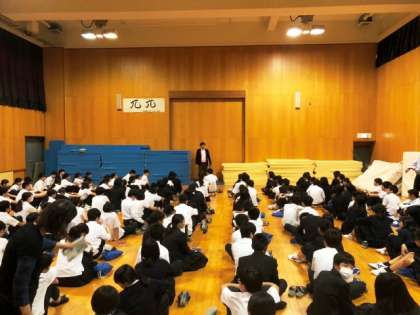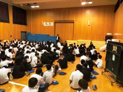 2年生は、6限目に明日5月16日(木)に行う校外学習の事前指導を格技室にて行いました。