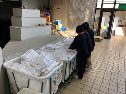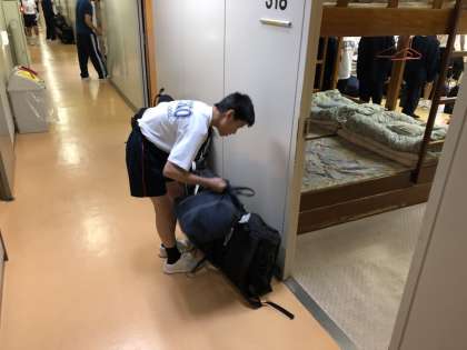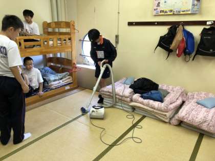 布団をきれいに畳んで、掃除をして、施設の方にチェックをしてもらいます。お世話になった施設を心を込めて掃除をし、一発で合格できるように、一生懸命きれいにしています。