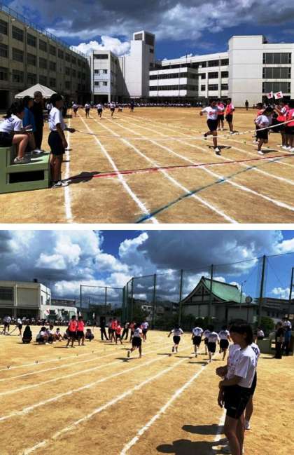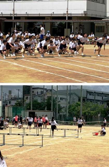 100m走、50mハードル走、二人三脚の様子です。