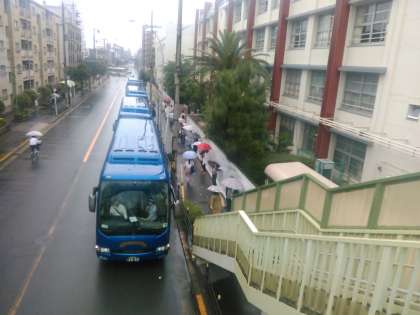 早朝よりたくさんの保護者の方に見送りにきていただき、7時25分に元気に出発していきました!