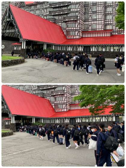 バスを降車して整列後、1組から順番にホテルに入館しました。