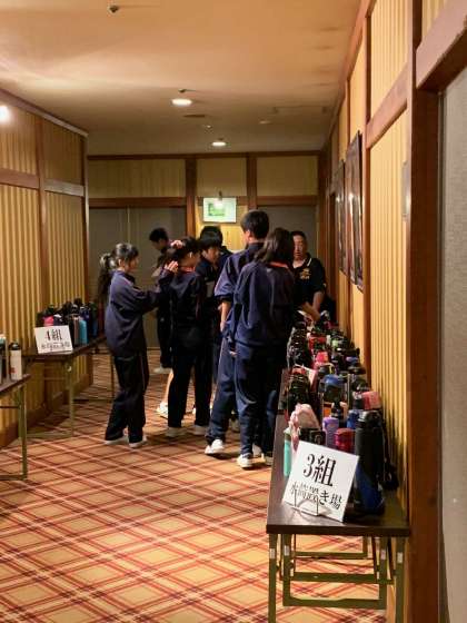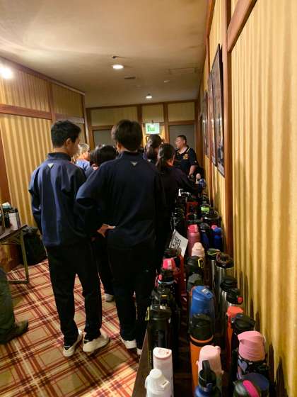 水筒を受け取り、バス駐車場へ集合です。