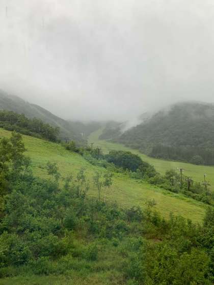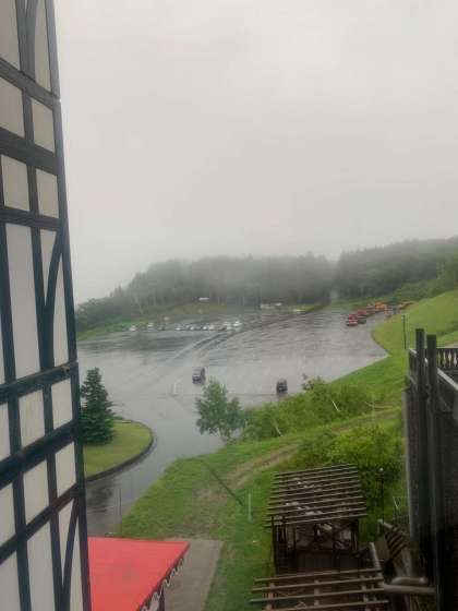 全員の起床時間となりました。今は空がどんよりとして雨が降っています。
