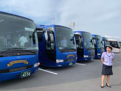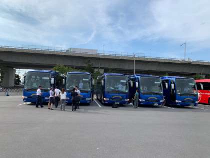 ナガシマスパーランド駐車場からバスに乗車し、瑞光中学校に帰校するために出発しました。