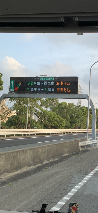 近畿自動車道の吹田を午後6時40分頃に通過し、渋滞6kmなので、予想では午後7時15分頃学校到着予定とのことです。
