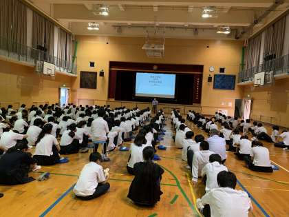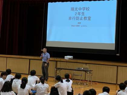 本日7月10日(水)5限目に体育館にて2年生は、非行防止教室を行いました。東淀川警察署少年係の担当の方が講話に来てくれました。