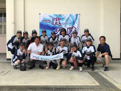 試合前に撮影した集合写真です。勝利を予感させる笑顔がいっぱいの写真です♪