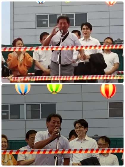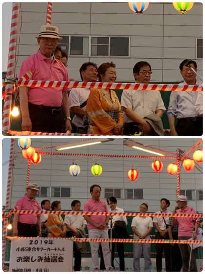 午後7時に御来賓の方々のご紹介が行われました。国会議員、東淀川区長、府議会議員、市会議員、消防署長、東淀川区地域連合町会会長等に混じって小松小学校長、我らが瑞光中学校の阪井校長先生が紹介されていました♪