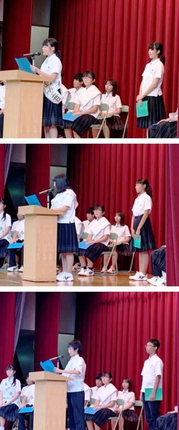 候補者たちと応援者たちはそれぞれが素晴らしい演説を行い、瑞光中学校をより良くしていく意気込みが全校生徒に伝わりました。
