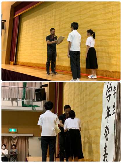 結果発表があり、金賞2組、銀賞4組、銅賞3・1・5組となりました。2組と4組の表彰が行われました♪