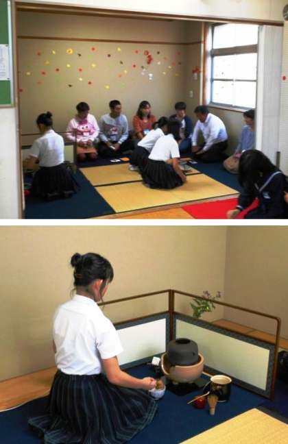 本日10月16日(水)の文化発表会第一日目に午後4時00分より第1回目の茶道部による「秋のお茶会」が開催されました。
