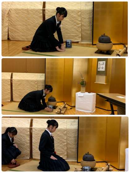 鶴見区民センター3階で行われた茶道部のお点前に参加してきました。瑞光中学校茶道部は集会室2で行いました。
