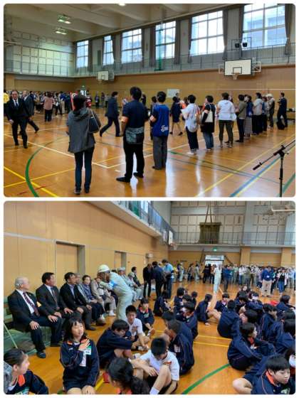 本校1年生、教職員、地域の方々、ご来賓の皆さま方が開会を待っている様子です。