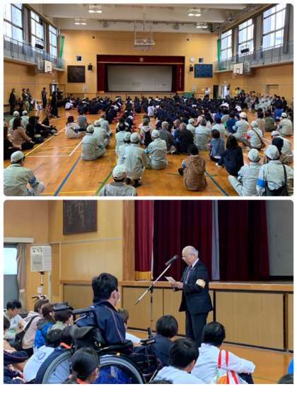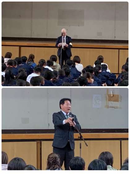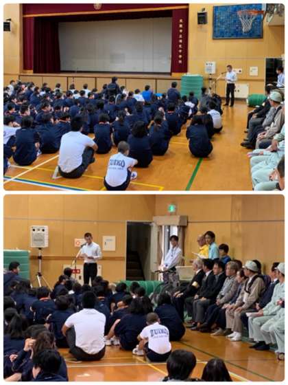 校区3地域を代表して東野会長のご挨拶、阪井校長先生の挨拶です。