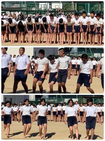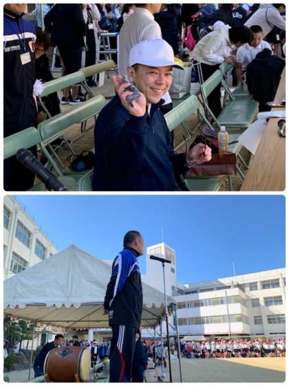 「鼓動」の演技発表後の6年生たちのあいさつと全学年の発表終了後、全児童の一生懸命で素晴らしい発表に心を震わせ、ハンカチで涙をふきながら感動していた兵庫校長先生です♪