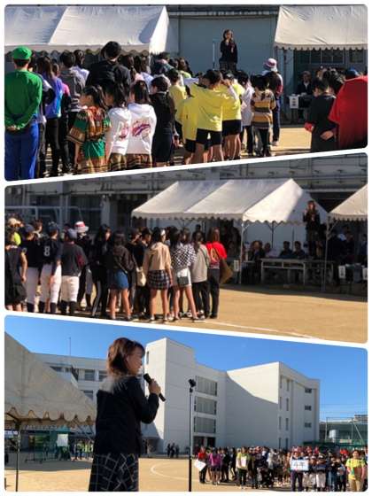 小松小学校PTA会長、校長、瑞光中学校PTA会長のあいさつに引き続いて準備体操を行いました。