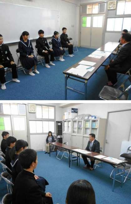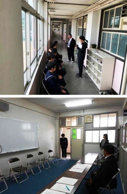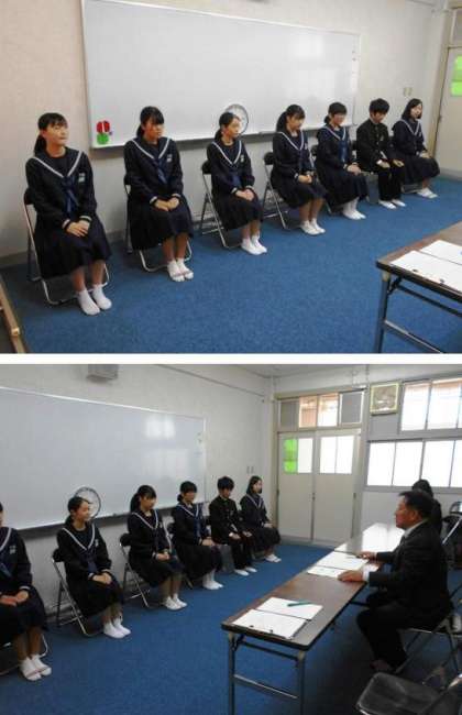 姿勢がよく、校長先生からの志望動機、中学時代に頑張ってきたこと、高校でやりたいことや将来の夢等の質問に対し、具体的な例を挙げて答えることができる生徒がたくさんいました。