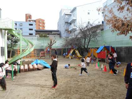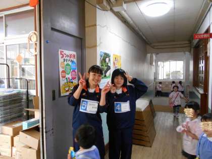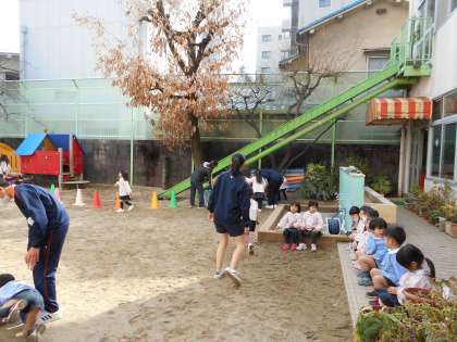 美鳩幼稚園では園児たちと一生懸命遊んでくれていました。