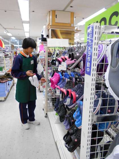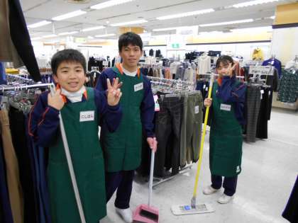 イズミヤ 上新庄店で体験活動です。店内の清掃と商品の陳列です。