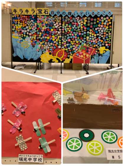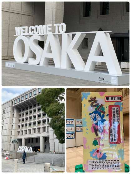 現在、大阪市役所の正面入口1Fフロアで第57回さくひんてんが行われています。本校生徒の力作も展示されています。