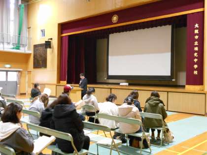 給食関係については門田教頭よりアレルギー対応について説明があり、中村事務主任からは事務手続きについてご説明させていただきました。最後に、東淀川区役所保険福祉課の宇野課長代理と岩槻係長より4月に開講予定の「こぶしのみのり塾」について連絡がありました。
