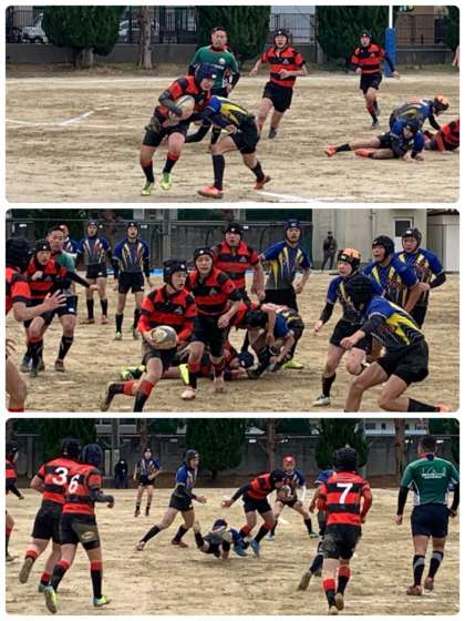 前半開始早々に先制されましたが、トライを取り返し、一進一退の展開となりました。