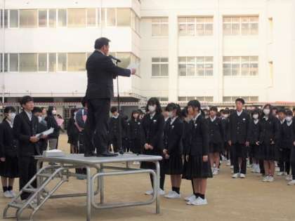 今日の全校集会では剣道部と吹奏楽部の表彰が行われました。
