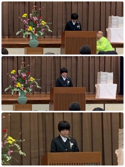 優秀賞に選考された自分の作文を立派に朗読しました。最後は表彰された全員と御来賓の方々での記念撮影がありました。