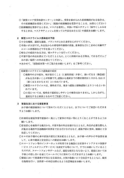 新型コロナウイルス感染症の拡大予防に向けた学校休業の延長(お知らせ)