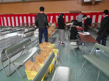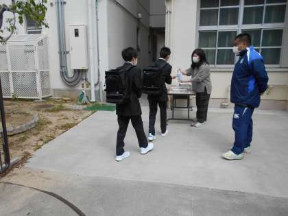 本日は、1年生の学習課題等の受け渡しが行われました。1年生の生徒と保護者の方にお越しいただきました。一年生は、新しい制服と白い靴で元気よくあいさつしてくれて、教職員もとても安心いたしました。