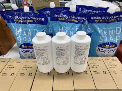 昨日、本校の校区にある株式会社 資生堂さまのご厚意により薬用ハンドソープと消毒液をいただきました。小松連合振興町会長の松山会長が本校へ届けていただきました。来週から登校日も始まりますので、瑞光中学校の生徒のために大切に使用させていただきます。教職員一同感謝申しあげます。ありがとうございました