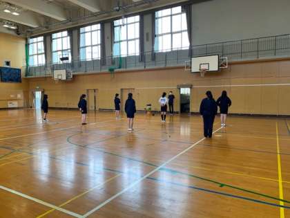 今日は体育の授業を行いました。先生から体育の授業について説明があり、フィジカルディスタンスをとって感染予防に注意しながら活動するようにしています。