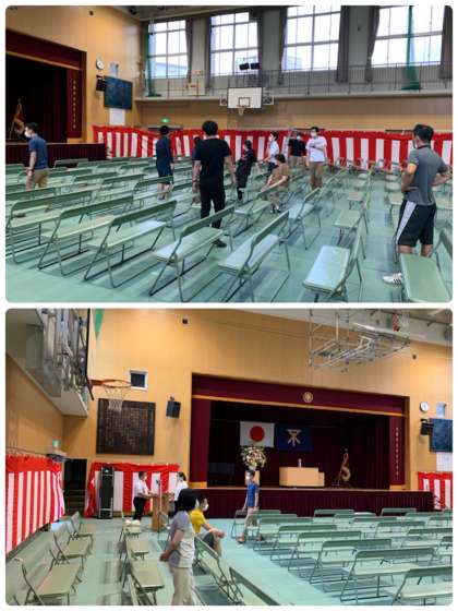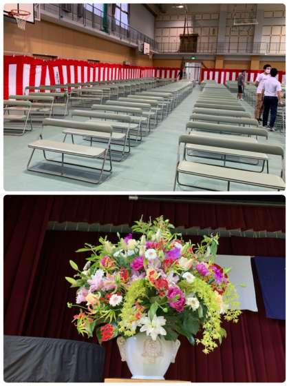 明日6月20日(土)の入学式準備がほぼ完了しました。細かい部分の微調整や最終点検はありますが、ご苦労様でした。
