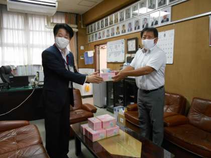 本日、小松地域青少年指導員協議会の村冨会長より瑞光中学校へ子供用マスクを生徒数分寄贈していただきました。これから学校行事等で使用することもあるので、とてもありがたいです。大切に使用させていただきます。ありがとうございました。