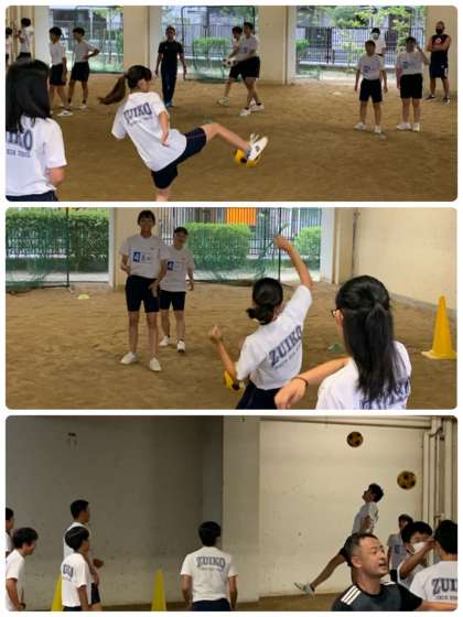 パソコン室では興国高校によるITビジネス(ゲームプログラミング入門)、体育館では大阪高校によるバスケットボール、ピロティでは大阪学院大学高校によるサッカー(楽しくサッカーを教えます)が行われました。