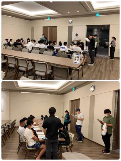 明日の朝の動きの確認と本日午後11時消灯就寝を確認しました。