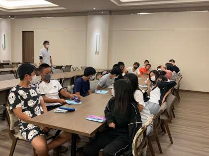 本日は午後10時40分から2Fのスクウェアホールで室長会議を行いました。今日も集合時間に遅れた生徒が一人もいなかったので、学年主任の樋口先生からお褒めの言葉がありました。時間を守る、迷惑をかけないという約束がしっかり守れています。