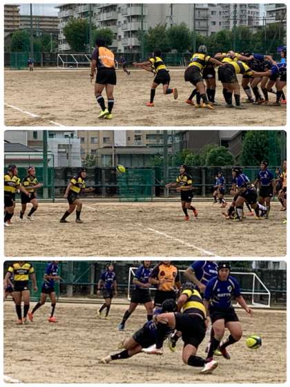 両チーム、ミスもありますが、好プレーの連続です。お互いゴールラインのそばまでは行きますが、トライをすることが出来ません。