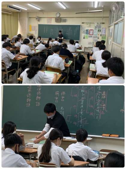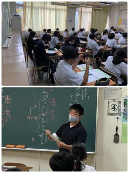体言や用言、連体修飾語や連用修飾語等、「国語の文法」について丁寧に教える授業でした。