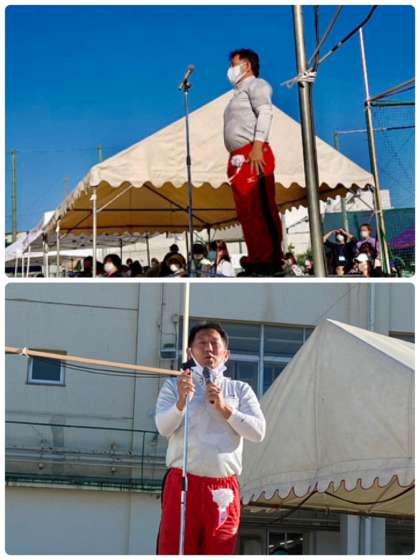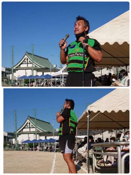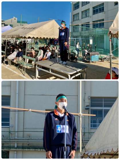 第1部閉会式の前に生徒席への集合確認を実行委員長の羽原先生が行い、第1部閉会式では、大会委員長講評として阪井校長先生からお話がありました。開会式でのお話にありましたが、全員が全力で一生懸命頑張っていたことと一生懸命という感動を届けてくれたことへの御礼をお話され、明日も頑張ろうと激励されました。最後に第1部の閉会宣言で今日の体育大会を締めくくりました。
