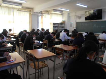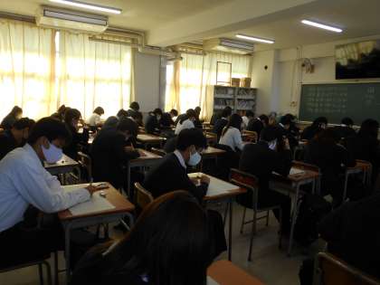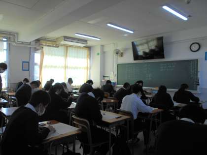 今日は3年生は、3回目の実力テストを行っています。