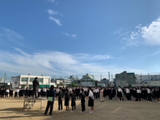 今日の全校集会は気持ちのいい秋晴れのもと、行われました。
