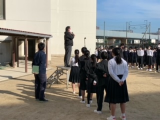 校長先生からは、今週の土曜日に行われる要支援者避難体験のこと、南海トラフ地震のことについてお話がありました。学校では避難訓練、集団下校訓練など、様々な取り組みをしています。生徒の皆さんもこういう機会におうちで話題にして、防災用品の確認などを行なってみてはどうでしょうか?