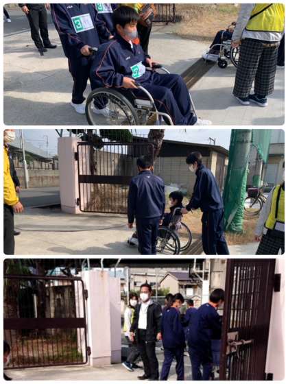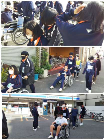校外での車いす体験です。