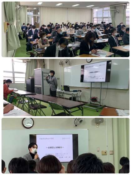 本日11月13日(金)午後3時30分〜5時に本校教職員への「自殺防止研修会」を行いました。大阪市中教研生活指導部専門委員、大阪市SSW、東淀川区役所、主任児童委員、本校PTA役員等も参加し、自殺防止について真剣に考える研修会となりました。