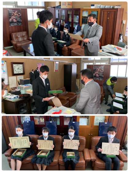 例年ならば、税務署にて東淀川区と淀川区の合同表彰式が行われ、全校集会でも表彰を行うのですが、今年はコロナ禍のため校長室での表彰式のみとなりました。